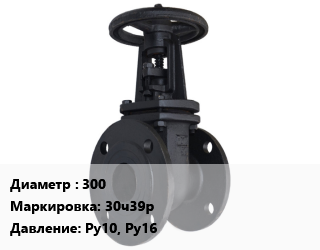 Задвижка чугунная 300 30ч39р Ру10, Ру16