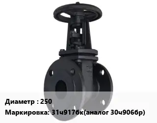 Задвижка чугунная 250 31ч917бк(аналог 30ч906бр) Ру10